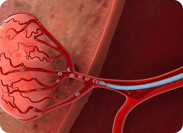 Bloqueia o fluxo sanguíneo dos miomas, promovendo redução do volume.
